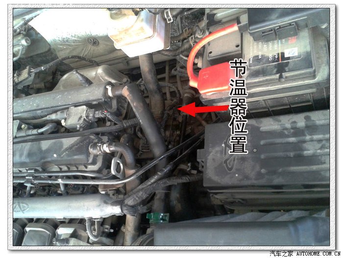 今天上午特意做了个实验,冷车行车3公里后,水温表指针指向第一格处时,打天机舱盖,手摸水箱的上水管(进水),烫手;手摸下水管(出水),也烫手。此现象说明,在水温未达82度时,冷却系统已开启了大循环,更加证明是节温器闭合不严。