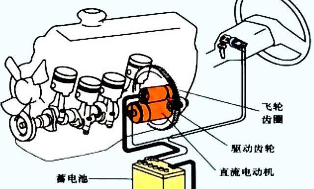 简而言之为机械点火开关是通过钥匙控制Start挡,实现电路系统的激活通路,让电瓶以最高放电倍率往起动电机输入电流;电机通电后会通过单向离合器将小齿轮推动到与发动机飞轮的圈齿啮合,同时电机开始运转则可带动内燃机运转以启动,参考下图的启动系统结构特点。