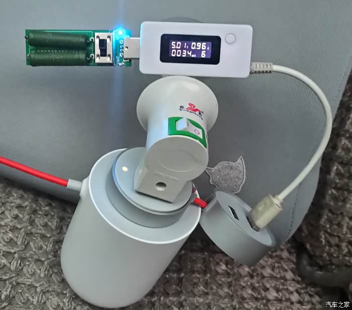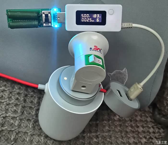 小米米家车载逆变器USB的输出电压在达到2A左右的负载的情况下,电源的电压降到了5V以下,这个数据是可以接受的,不影响正常使用。