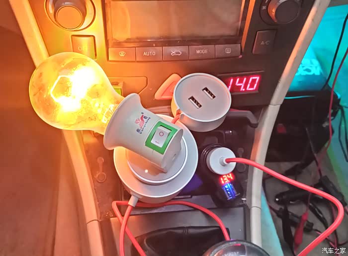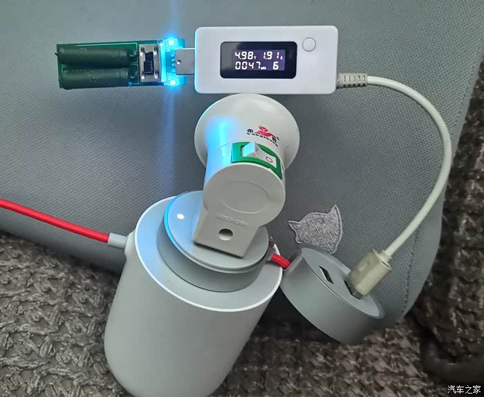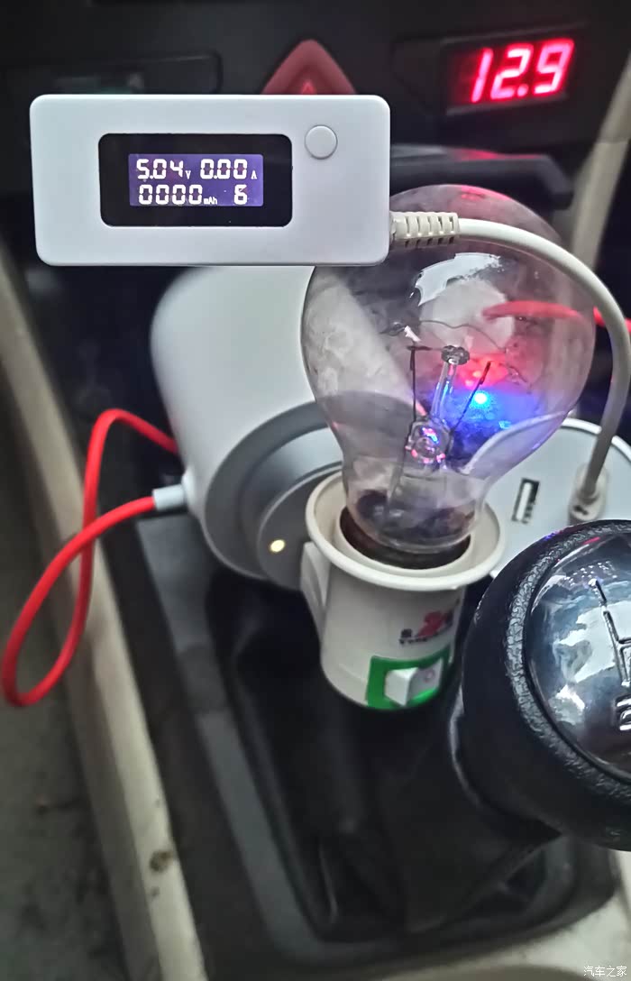 下面进入数据测试,既然是测评就必须用数据说话。车载电源的供电电压为13.5V,插入点烟器电源以后, 小米米家车载逆变器上面的一个白色的灯亮起来。