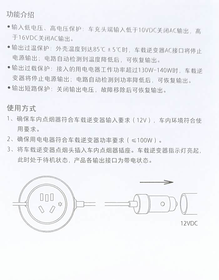 产品的功能介绍,让车载的12V电源成为家用电器的供电电源成为可能。