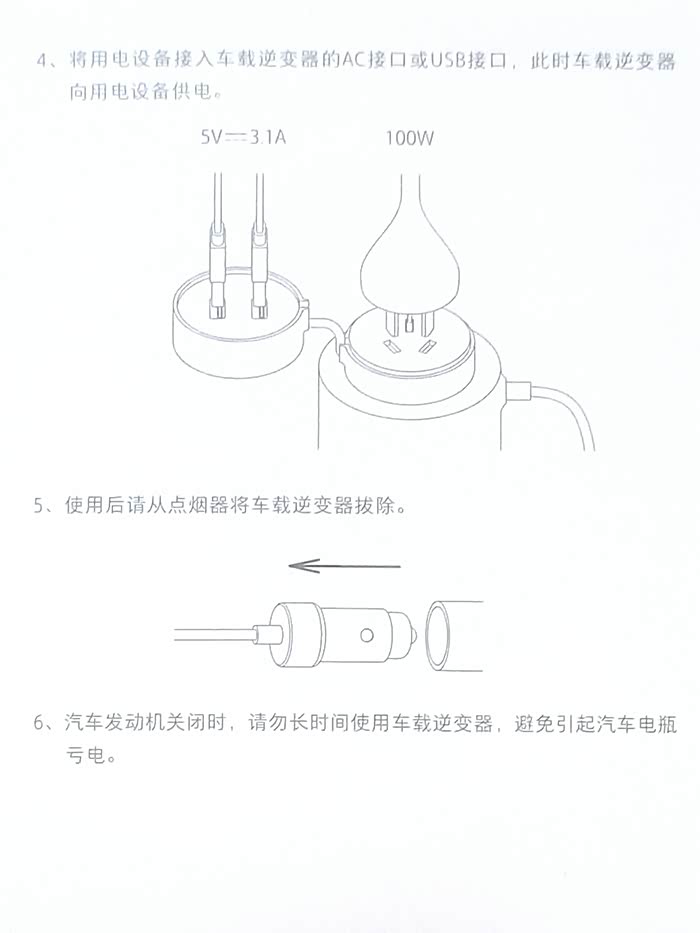 3、米家这款车载逆变器的额定输出功率为100W,可以满足我们短时间内的自驾需求。