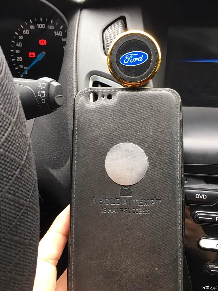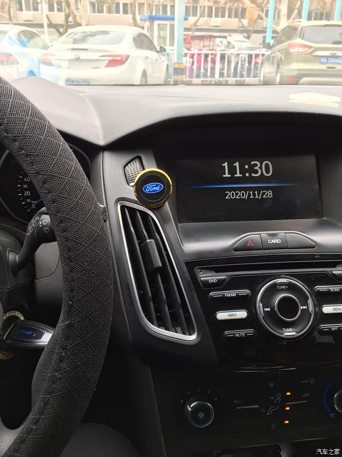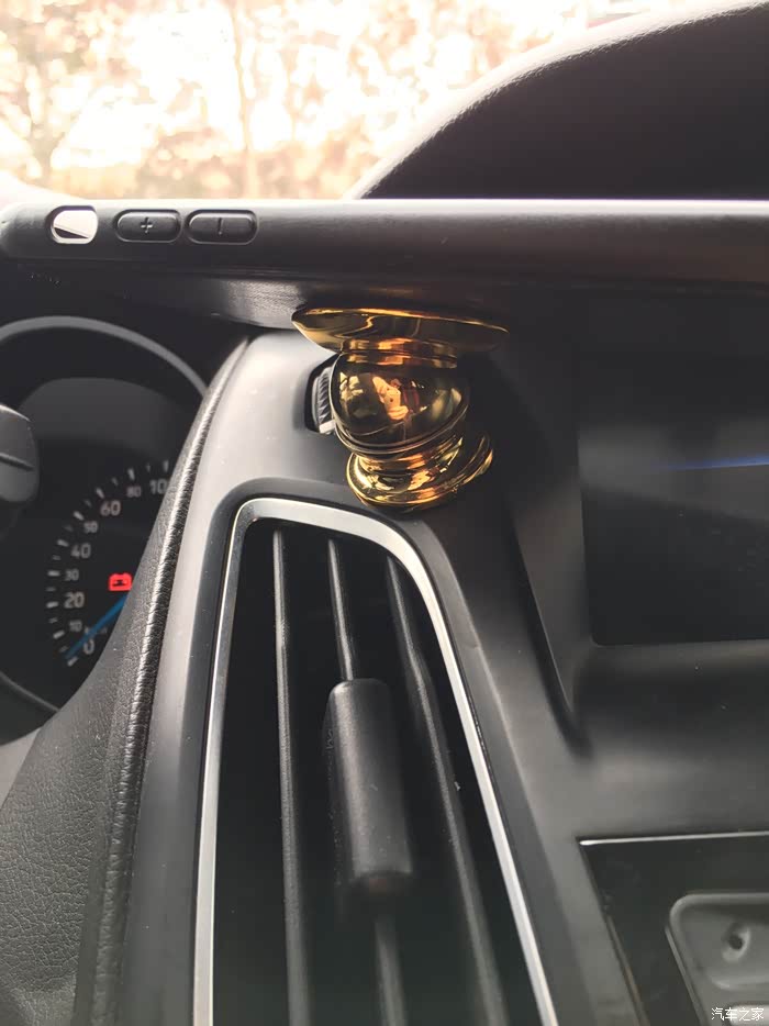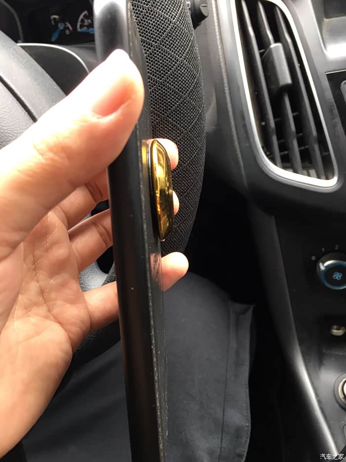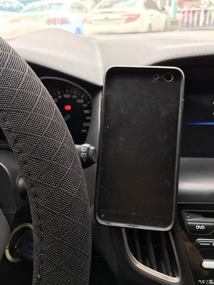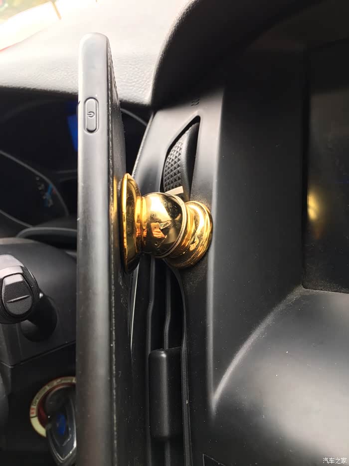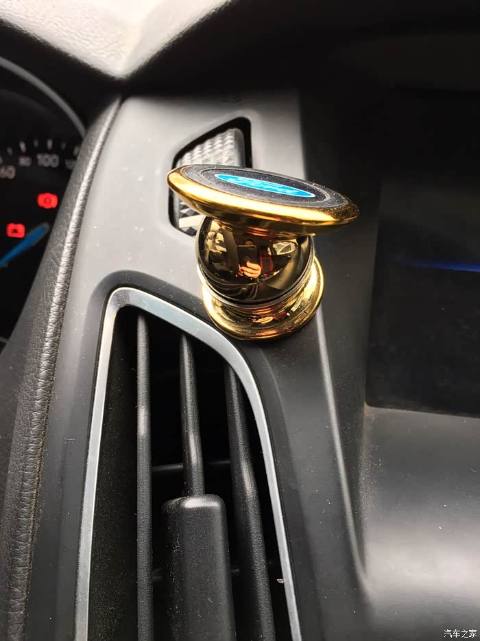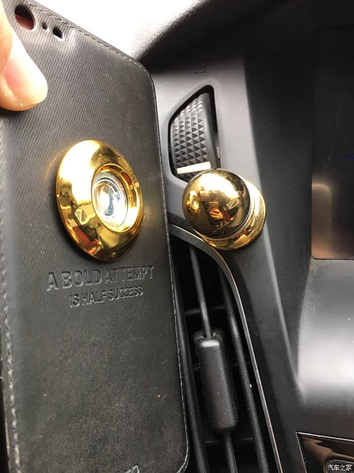 选择位置的时候出现了一点困难,因为我的车前面是软塑料材质,而且不是平滑的,有点磨砂的效果,黏贴效果不好,只能在中控面板上寻找空间,找来找去,没有什么平整的地方,最后在空调出风口的上方找到了一点点空间,而且安装在这个位置,看导航时比较方便,并且不影响开车操作。个人感觉算是唯一一个比较合适的地方了。
