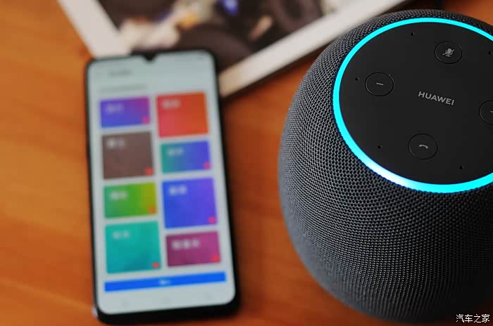 话不多说,这次我要测试的产品是这款AI音箱,它是一款拥有丹拿音质、声纹识别、支持智能电话,能够控制家居的智能化产品。音箱的外层表面采用纤维织布面料,完美的无缝设计,无论从任何角度上看都没有一丝拼接的痕迹,手感上也十分的细腻,环形灯带则可以通过不同的颜色和变换的灯效来显示音响的工作状态,2.25英寸的全频扬声器,震膜方面为铝制材质,具有重量轻、易推动的特点,释放出的音质具有高音清晰、低音澎湃有力的效果。