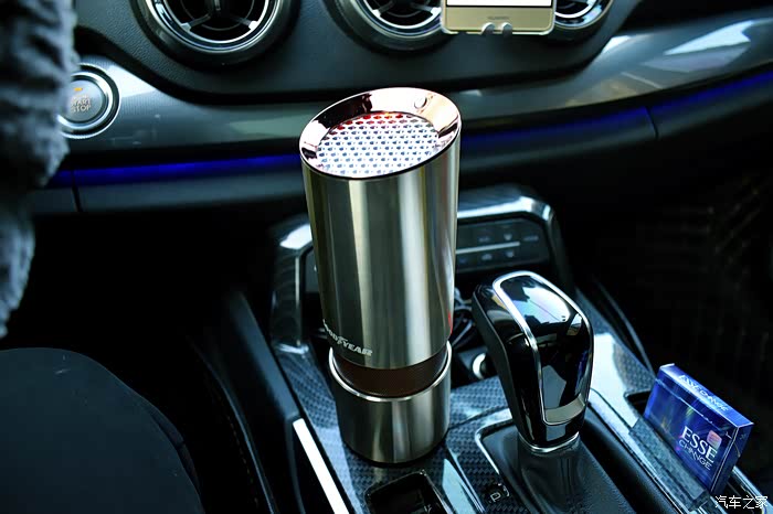 我个人认为,中控台上的杯架是放固特异车载空气净化器最好的地方。位置与点烟器的距离不超过电源线的长度,不影响车辆操控,放在杯架里还可以很好的固定,这个点子真是绝了。