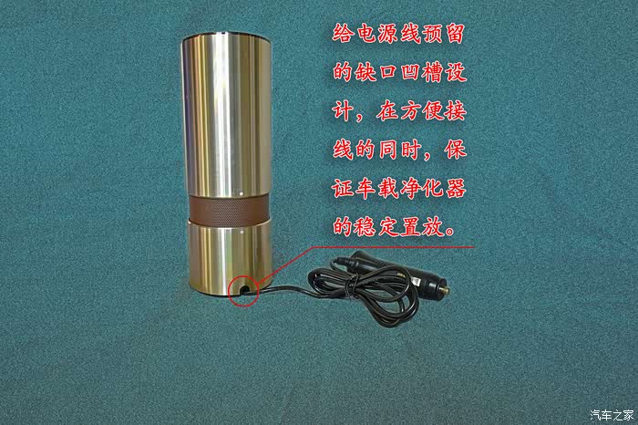 净化器底部有一个比电源线粗一倍左右的凹槽,使得车载净化器不至于因为压到电源线而产生倾斜。