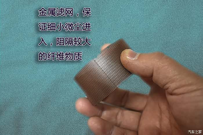 细小网口的金属滤网,表面是光滑的,空气在此进入不受阻碍,随空气一起进入的毛发、纤维等大体积物质在这里就被阻隔,算是第一层过滤。