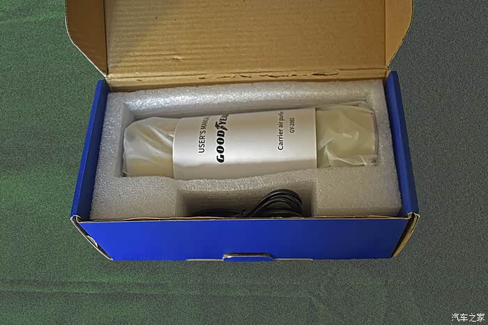 这款固特异车载空气净化器是我在汽车之家抽盲盒抽活动中抽到的车品。