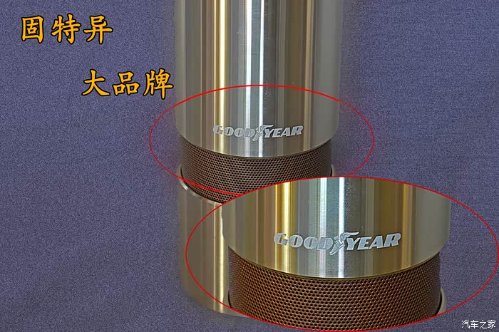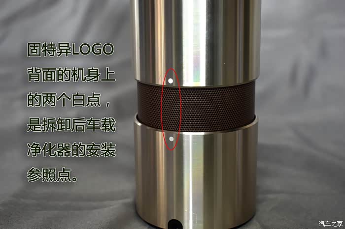 固特异LOGO的背面机身上有两个白点,这是拆装车载净化器的参照点。