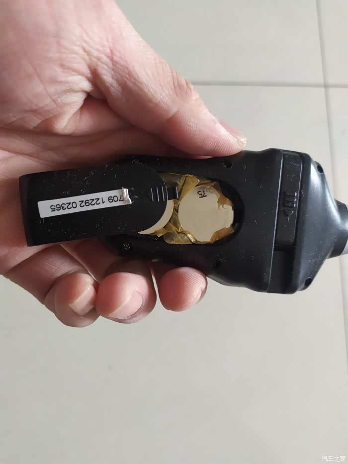 操作也非常简单,按下电源键on,开机,然后显示屏就会显示数字,开机重置数据,接下来就可以进行我们需要的测量工作了。胎压计后面有一处塑料盖板,打开后我们就可以发现他的纽扣电池了,有两块,都是5V的规格。更换电池的时候打开设备的后盖,取出旧电池,然后放入2个新CR2032的电池,确保电池正负正确,然后盖上后盖就可以了。这里继续说一下胎压计的开机,前面我们已经提到了,胎压计正面的两个黄色的塑料按键,其中一个就是开机按键,而且带有明显的开关标识。操作也是非常简单,这里当然我们也要注意保护环境,废旧电池及时回收并放到合理的垃圾箱,避免污染环境哦,设备刚入手时,电池后面是有塑料纸的,目的当然是用来绝缘避免耗电的,如果平时不用,当然也可以这么操作了。