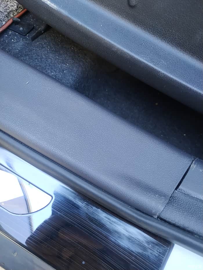 车上的门槛因为经常上下车的关系,容易脏和被刮花,所以我的车在新车时就贴了一套门槛防护条,金属制,表面拉丝工艺,并印有车型和logo,挺漂亮的,车用了两年了,司机侧的门槛条的一个角翘起来了,上下车经常蹭鞋子,朋友用车甚至被蹭坏鞋。于是,就在网上买了一套PVC门槛条。
