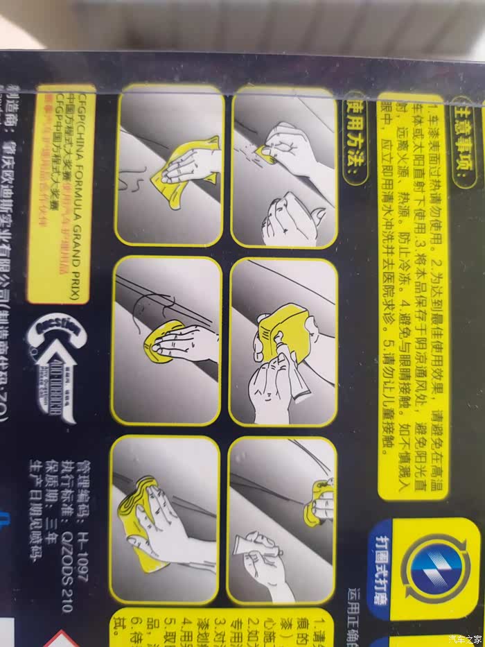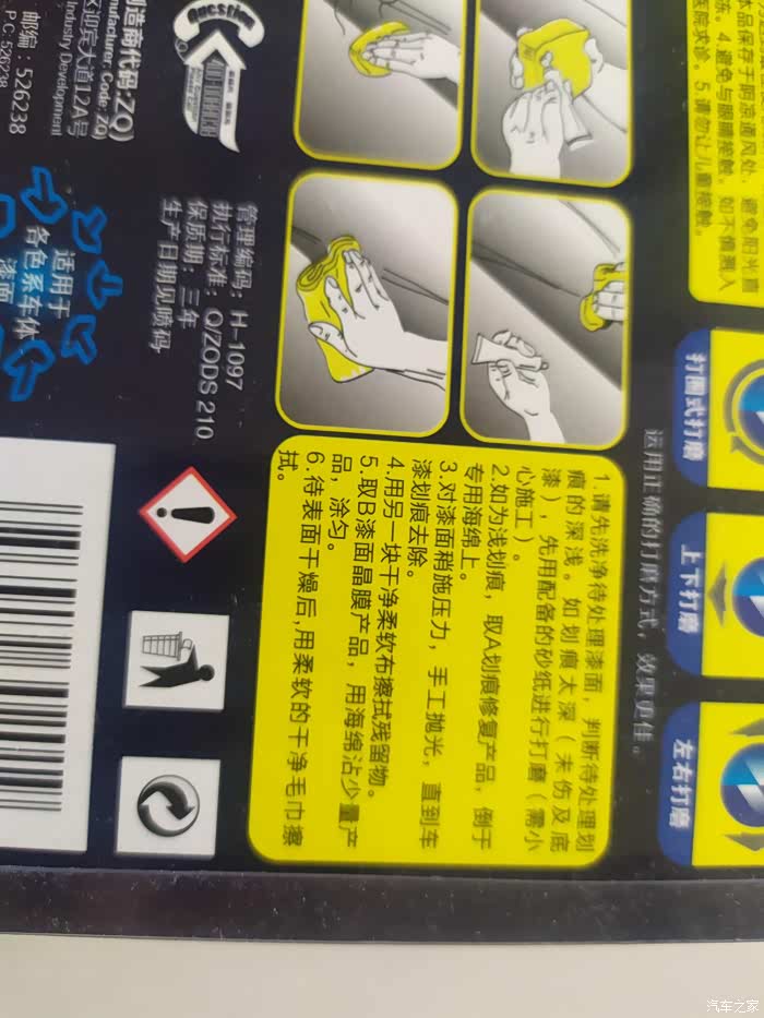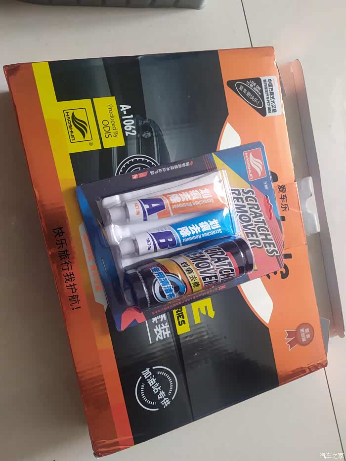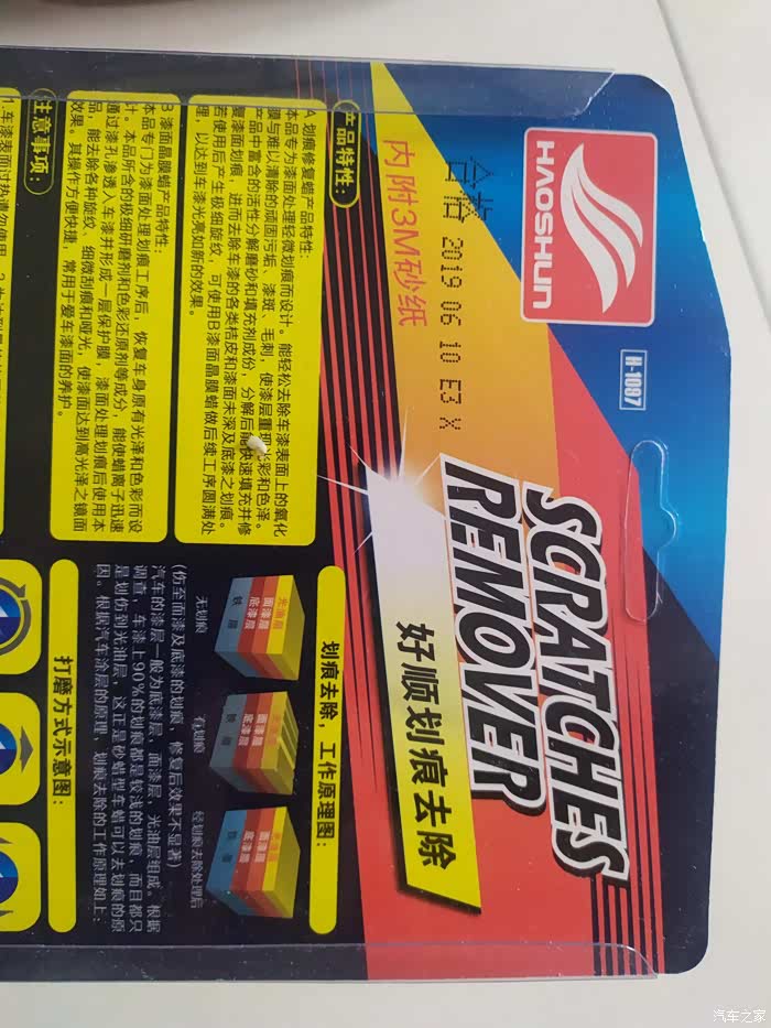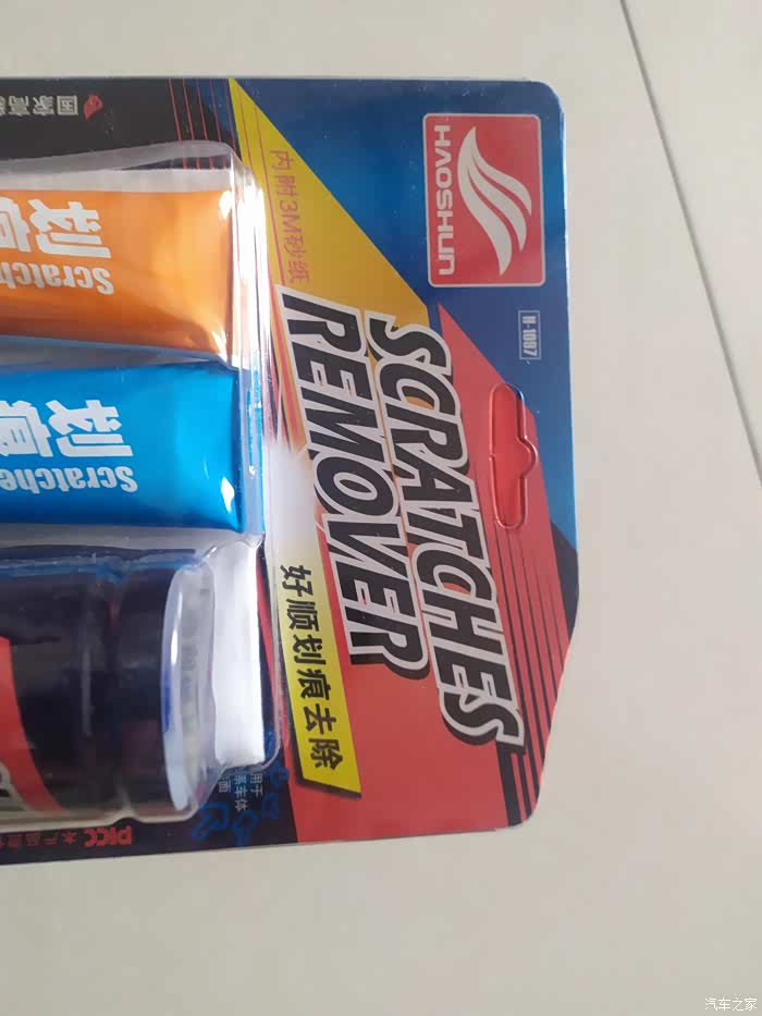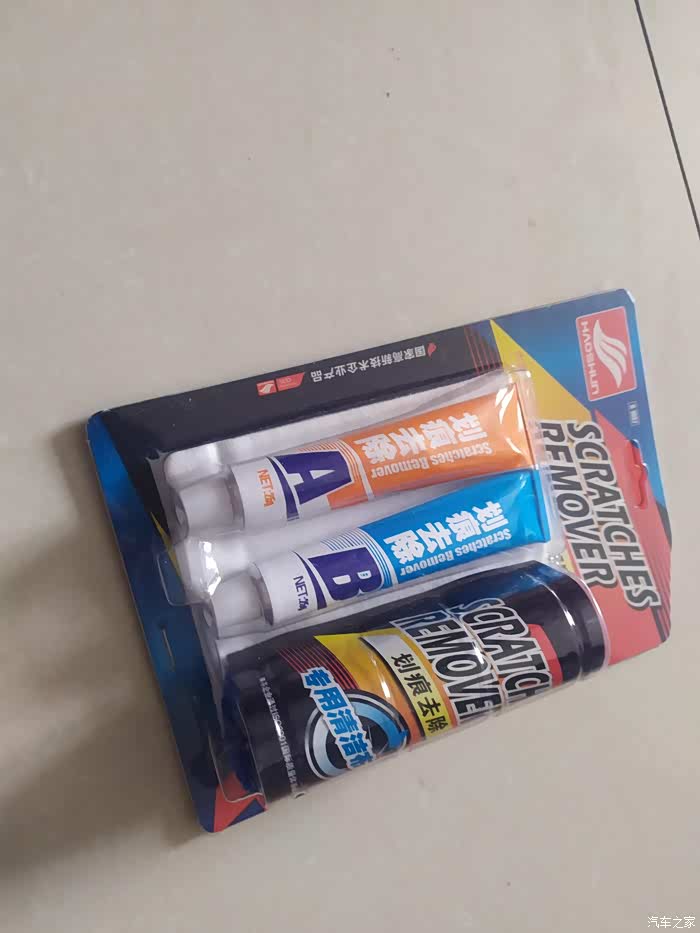 套装里的划痕修复蜡,是这件套装里包装最不同的一个了,它是使用了塑料盒纸盒双层包装,通过透明塑料纸盒,可以看到内部带有AD两部分划痕去除蜡,另外,右侧还带有专用的划痕去除蜡,使用时各种配件都已提供完整,操作起来省心省力。细看这两件瓶装,类似于牙膏一样的铝盒包装,分为了AB两部分,一款为橘黄色瓶身装,另一款使用蓝色瓶身装,而这两款划痕去除蜡作用和使用方法肯定也是不同的。A瓶则是用来修复漆面轻微划痕设计的专用产品,可以轻松的去除漆面的氧化膜和难以清除的顽固足够,花斑和毛刺等,从而使七层重新变得光滑有光泽。而B瓶则是用来配合A使用的,当A瓶蜡操作完成后,则是使用B瓶对车身进行进一步修复,用来恢复车身的光泽色彩,可以对车漆形成一层保护膜,从而对车漆进行进一步的维护保养,非常不错的产品。