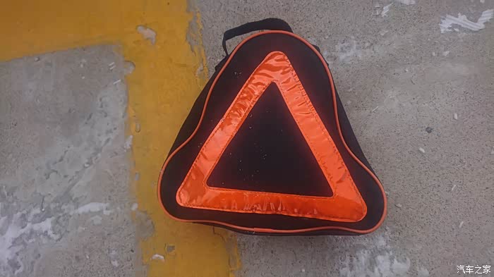 北面是三角警示牌,再发生事故的时候也可以放在车后。