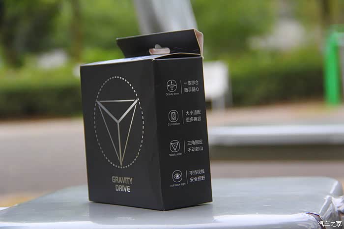 纯黑色的外包装,一个倒立的三角,是不是告诉我们采用三点固定的方式,固定手机。