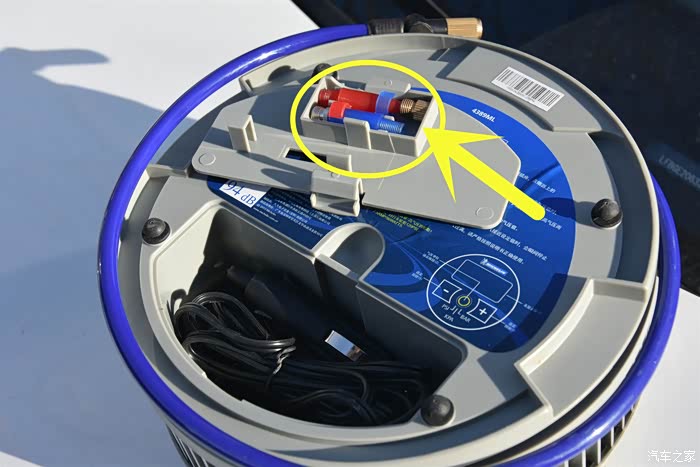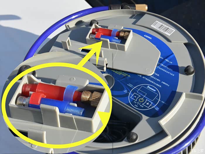 这张图片是我在网上找来的,图中用黄色圈起来的就是评测的这款充气泵。