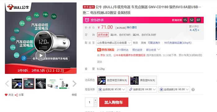 我个人对于公牛这款车载充电器非常满意,无论是产品的用料,做工方面都可以说是让人无可挑剔,使用起来非常放心,但是这一切以实物为准有点让人失望,最期待的带电压检测功能的车载充电器并没有如约而至,这算是一点小缺憾吧。