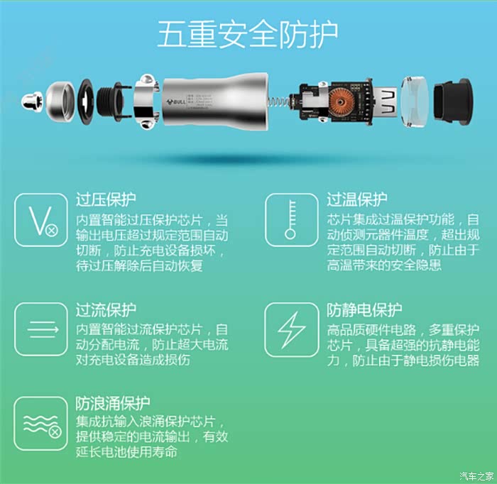调压保护功能还是相当实用的,毕竟车上的电压是不稳定的,用来充电对充电设备还是有很大损害的,这款公牛充电器很好的解决了这一问题。