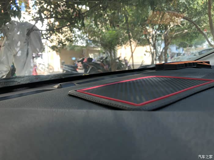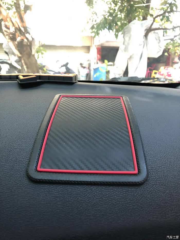 最后发现这防滑垫跟我车的内饰都很配,都是红黑搭配。