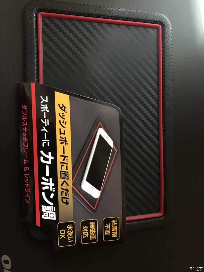 总结:小物件小体验,日本YAC碳纤纹路车载防滑垫环保硅胶材质,无异味,可弯曲,适用面广:纹路不错,红黑搭配不单调,跟我车的内饰很配。个人不建议在不平面的地方使用,开车的时候,刹车的时候还是有点不安全的。