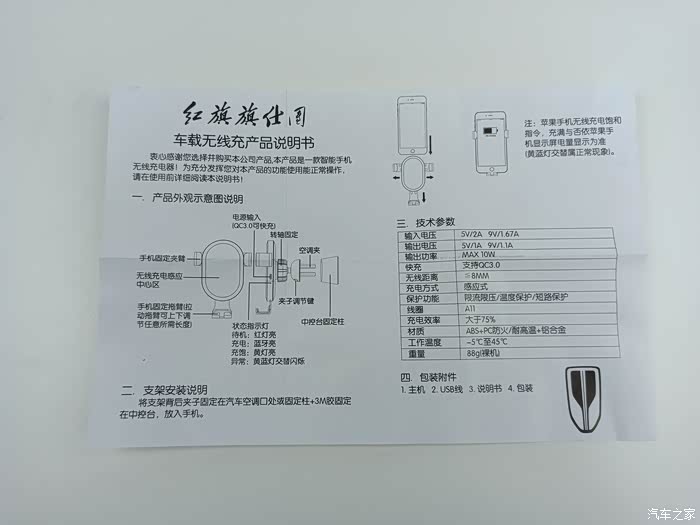 大家好啊,我是TJ强强,今天要测评的这款商品就是红旗车载无线充重力手机支架,这款车载无线充重力手机支架是由红旗出品的,现在随着红旗的亲民化大街小巷也可以看到很多红旗的私家车了,而红旗跟随着时代的发展也推出了纯电动的汽车,现在看来红旗已经完全的融入到我们的生活当中啦,好啦,说了那么多,下面就来看看红旗出品的这款车载无线充重力手机支架的实际使用测评吧!