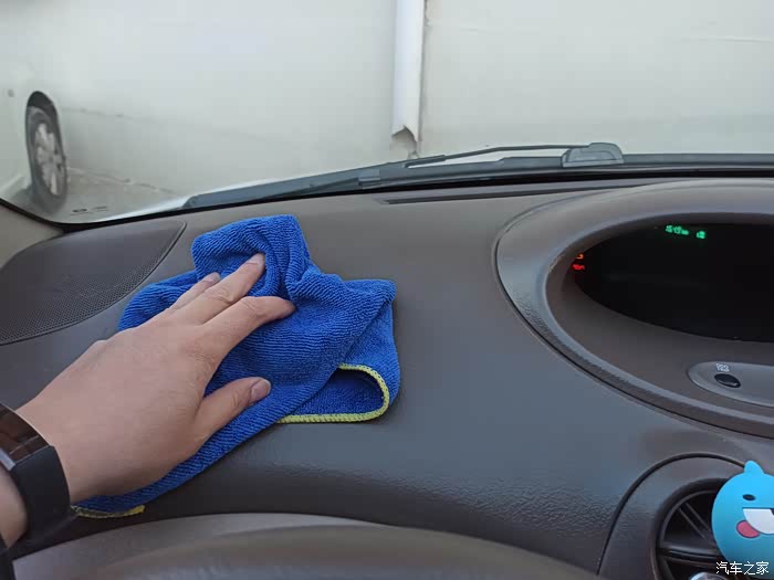 让我们先来小面积的试用一下吧,可以看出爱车的内饰经过表盘蜡的滋润还是很有变化的。