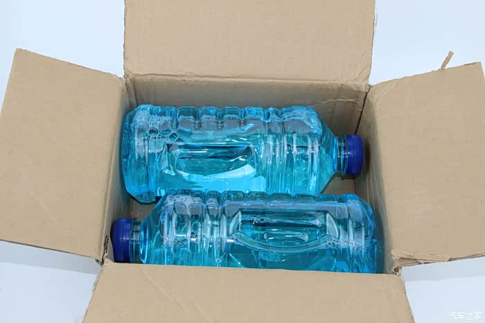 打开包装盒里面是两大瓶汽车玻璃水。