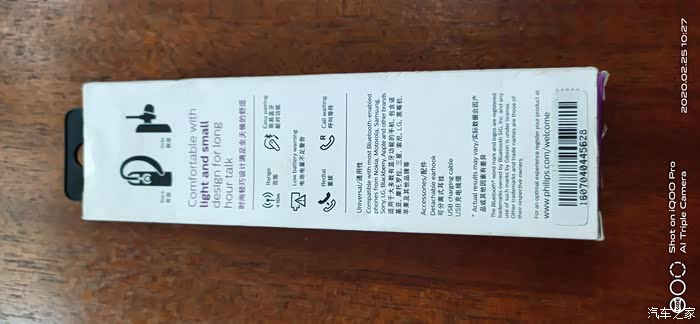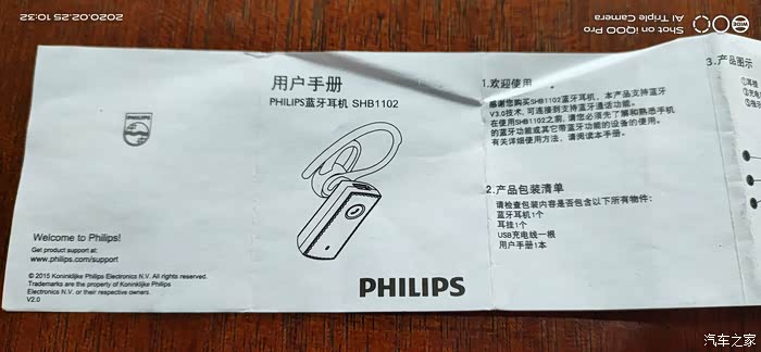 汽车之家SHB1102飞利浦蓝牙耳机。