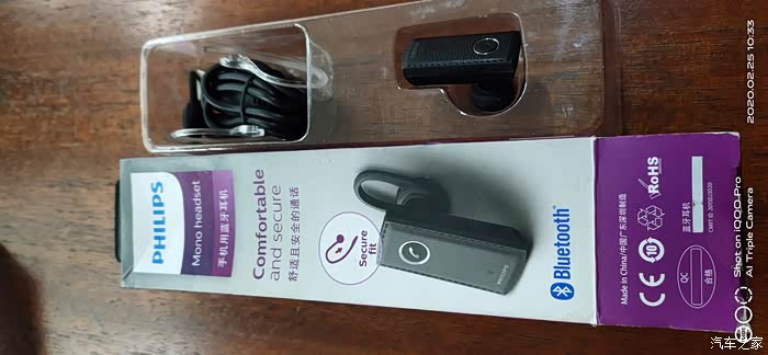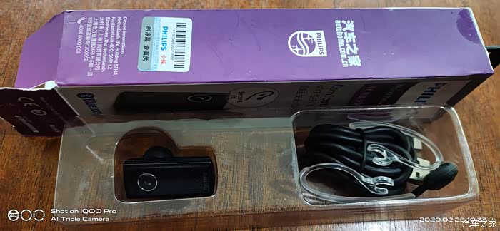 汽车之家SHB1102飞利浦蓝牙耳机。带一跟数据线的常规充电口。