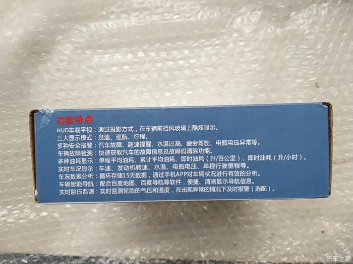这次获得的是车载HUD抬头显示器。抬头显示简称HUD,又被叫做平行显示系统。它的作用,就是把时速、转速等重要的行车信息,投影到驾驶员前面的风挡玻璃上,让驾驶员尽量做到不低头、不转头就能看到重要的驾驶信息。