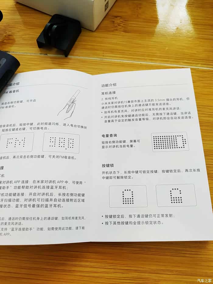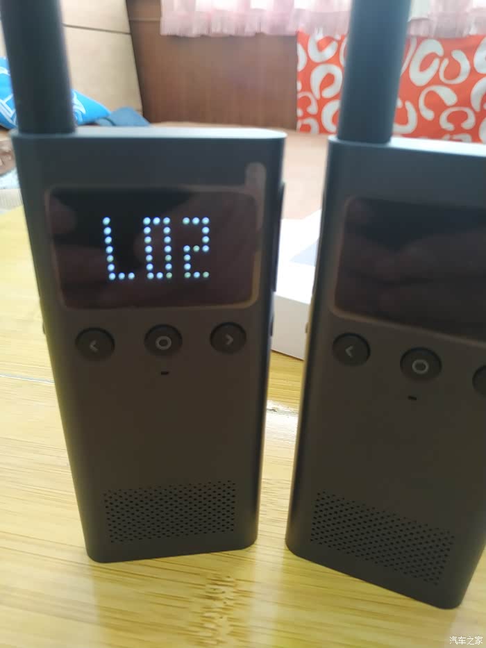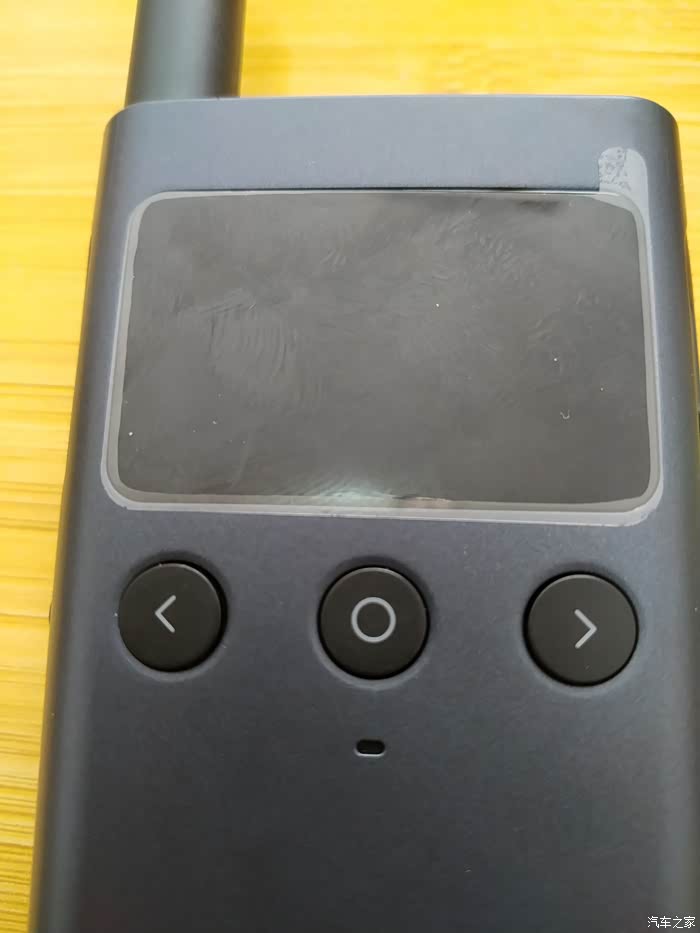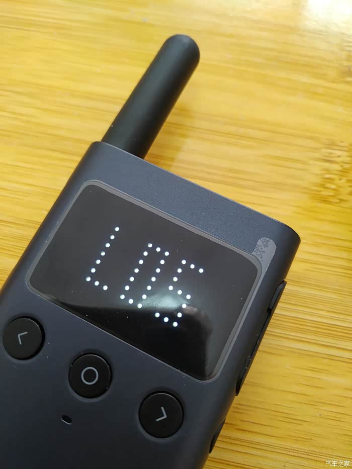 小米米家对讲机1s的正面是三个圆形的实体按键,中间的键是用来进行频道选择和按键锁,左边和右边为音量增减键,三个键的上方是一个LED点阵屏,纯黑屏幕搭配主动发光的点阵,在阳光下都可以看清楚。