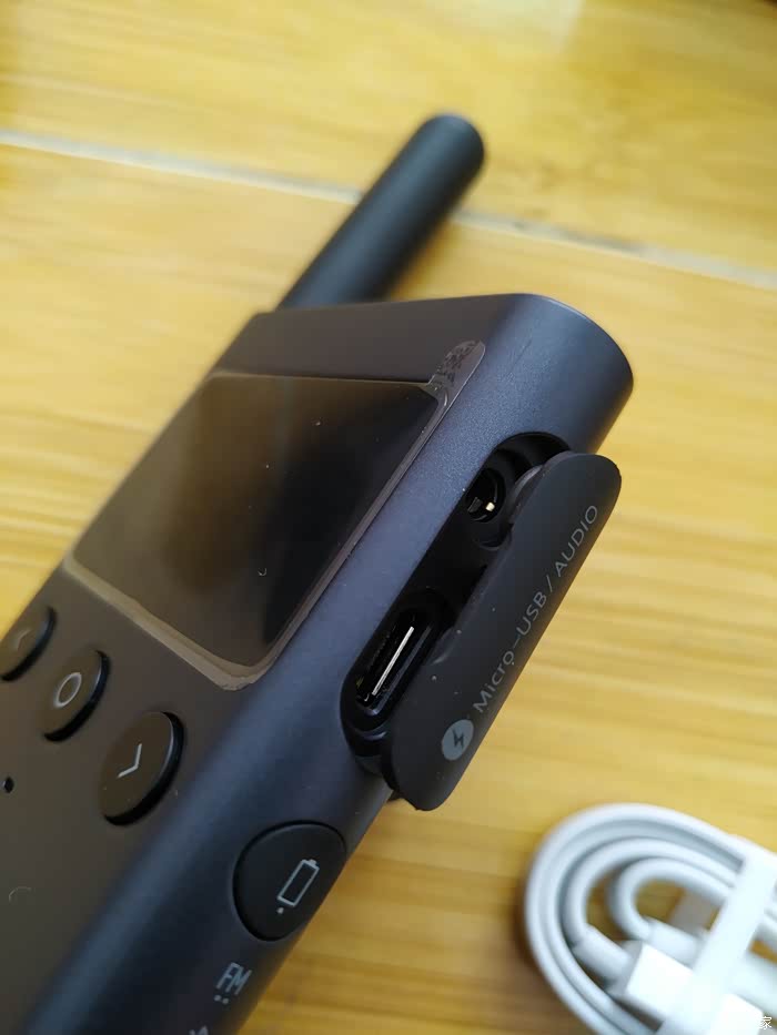 对讲机右侧,多功能键,充电口和耳机口。
