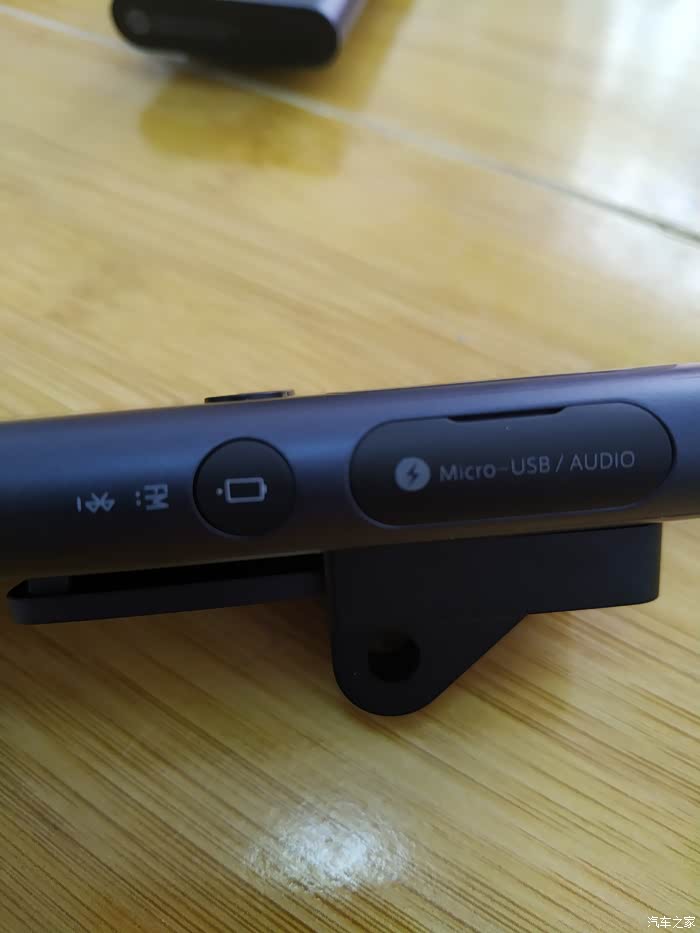 机身左侧,有一个带有4个防滑凹槽是通话键,通话键下面滑动式开机键。机身右侧,上面是由黑色防尘软胶覆盖的充电口和耳机接口,可以使用3.5mm插头的耳机,下面是一个多功能键,单击查询电量,双击开关收音机,长按开启蓝牙扫描,可以连接蓝牙耳机。