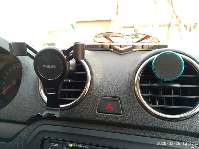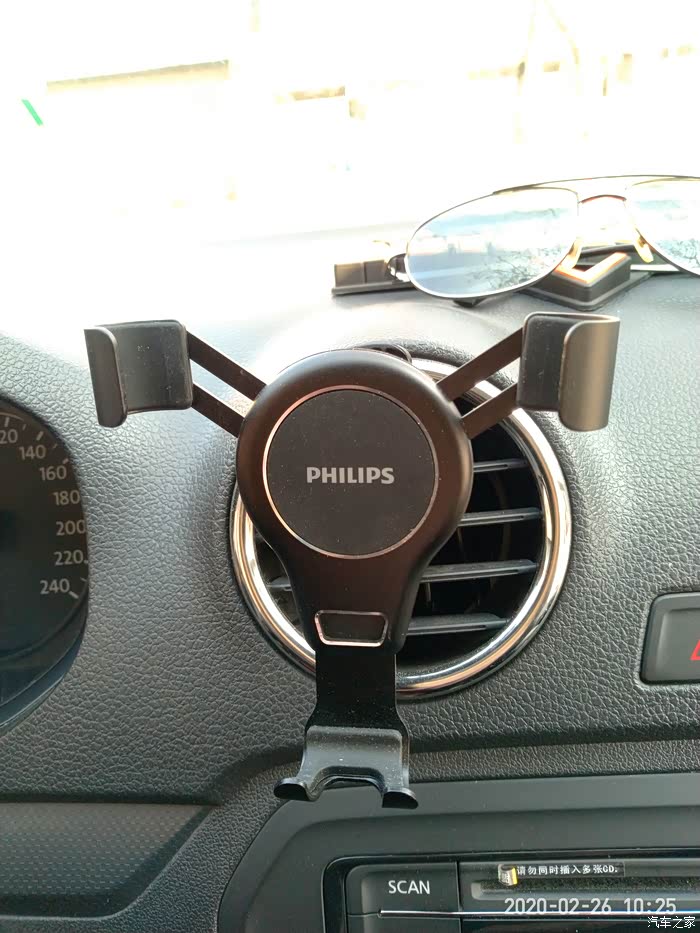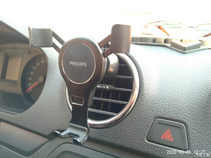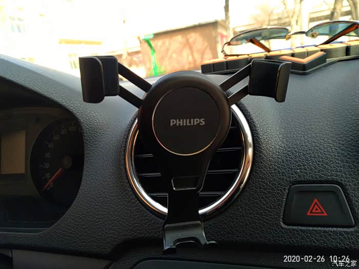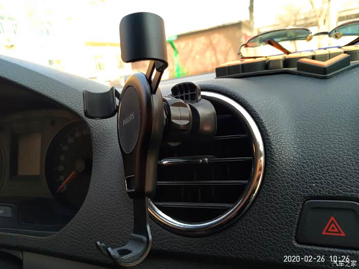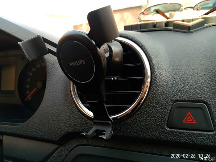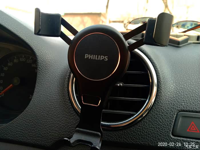 飞利浦这款手机支架是空调出风口式重力车载支架,依靠卡扣安装在出风口上。体积小巧、安装方便,放在左手位置使用起来非常顺手,视线也比较开阔,但是只能竖向安装。而可将设备定位在垂直位置,让您可以在车内轻松地控制和欣赏视频。放上去也不会影响充电,下面预留的有卡槽。