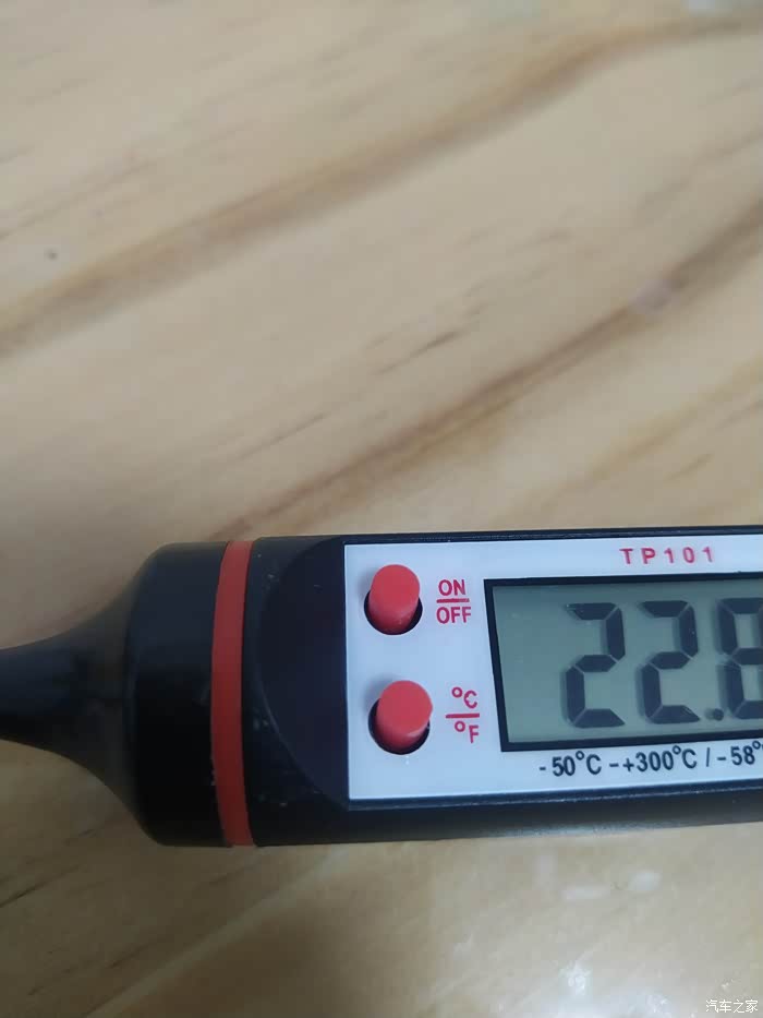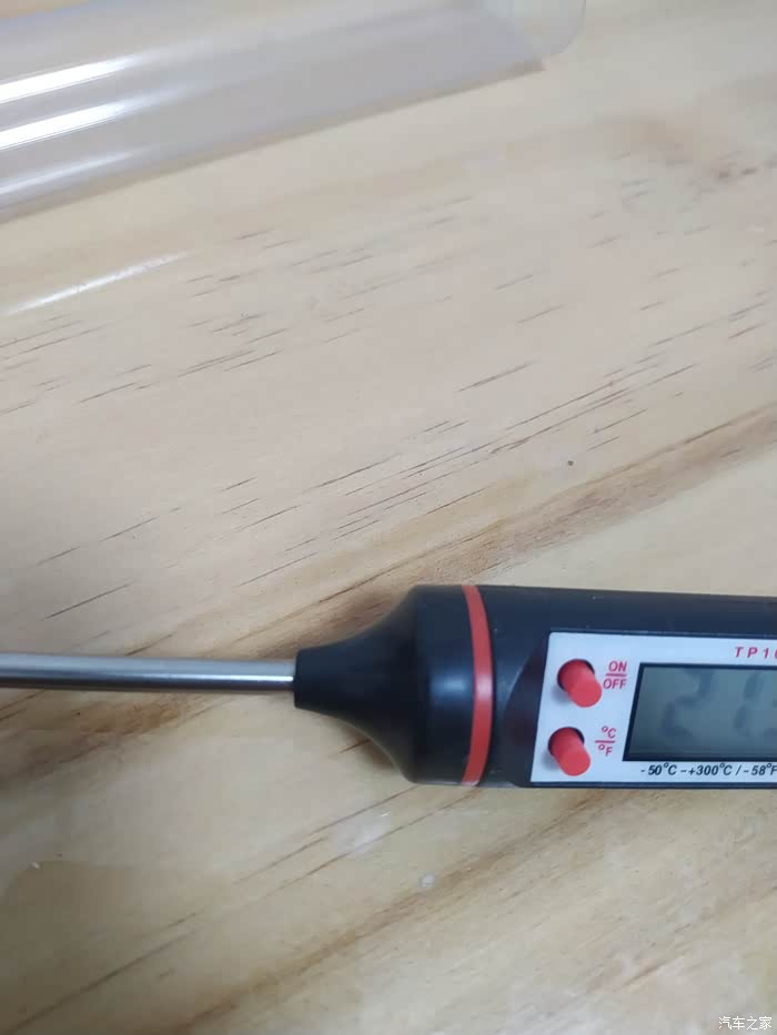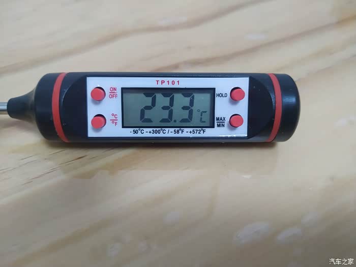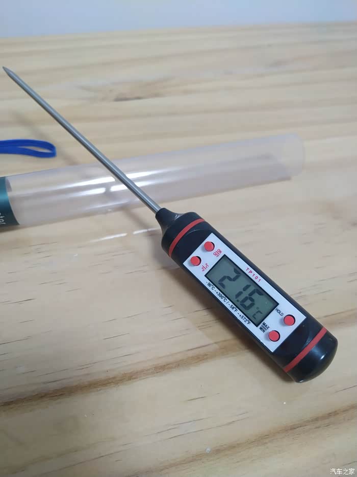 整体看这个油温机就像一个大锥子,前面是长长的不锈钢探针,长度:15CM,这么便宜的东西不会太精准,测量个大概。