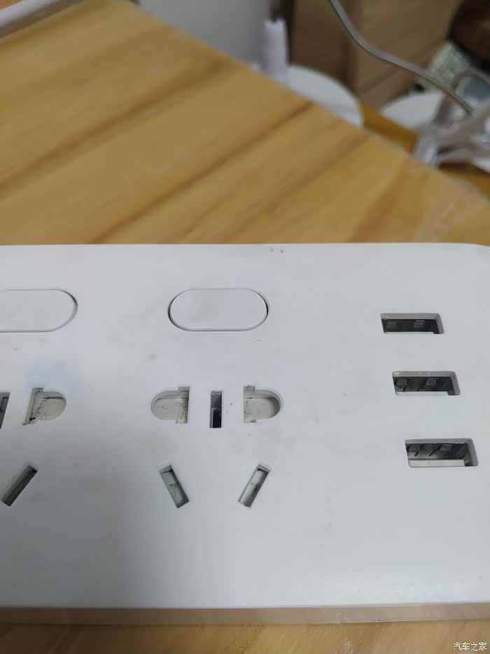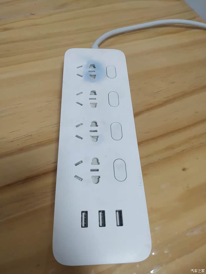 米家这款排插直观的来说用料做,给使用者考虑的也周到,我用的是一个白色的,插线板的规格为长239mm,宽78mm'厚29mm,重约460克,电源线1.8米,共有四个插位,每个插位都有一个单独的控制开关,还有三个充电插口,特别要说说这三个充电口,非常实用,觉得和用充电头相比速度还要快些,现在都是用这个充电,冲得快还不怕丢。