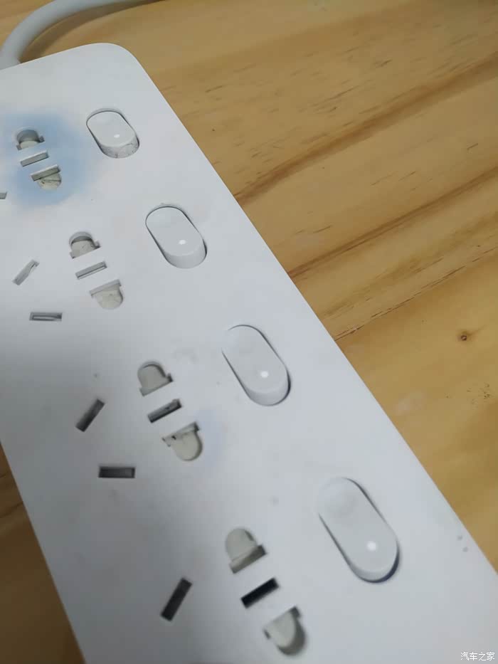 插线板全貌,一直在用,蓝色的污渍是夏天插电蚊香染上的,