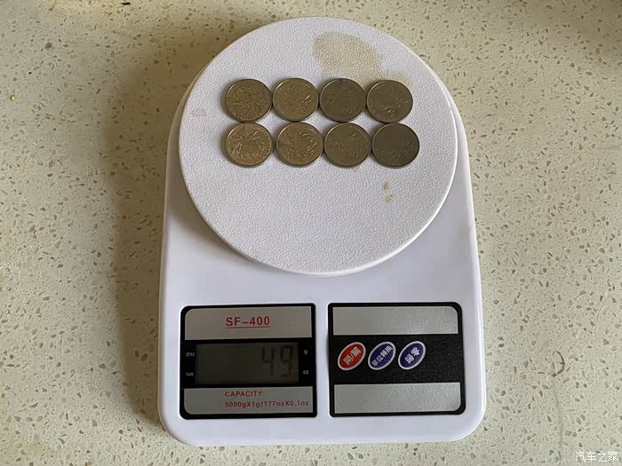 大概就是8个一元硬币的重量,这样可能大家能够更直观的了解产品本身重量。