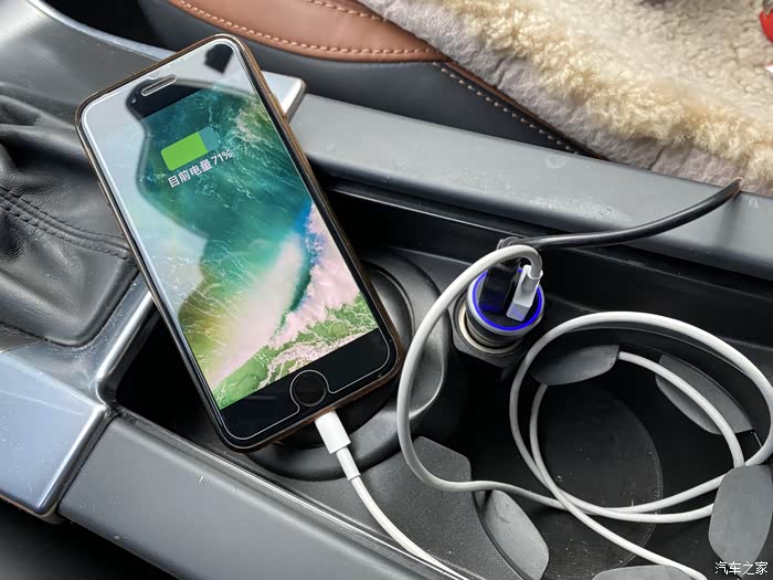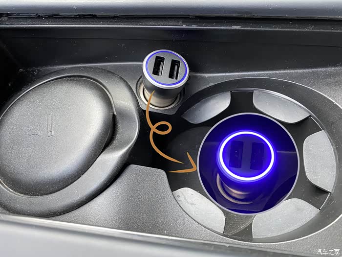 平时这里一直插着行车记录仪,长途行车会使用手机进行导航,就会一直插着充电器,使用频率极高。