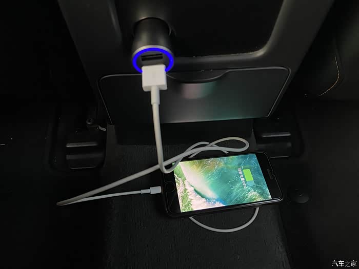 在车辆后排,也能够为后排乘客进行应急充电,充电的速度还挺快,非常便捷。