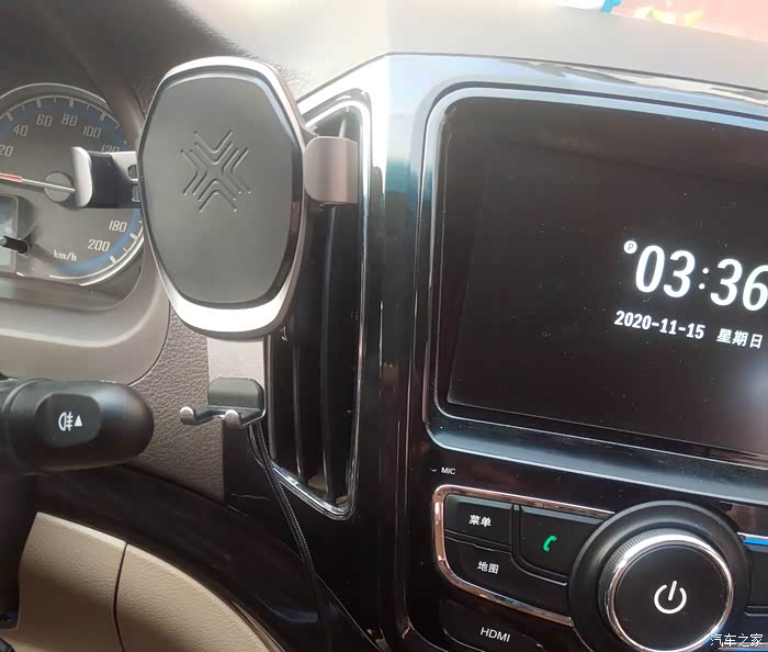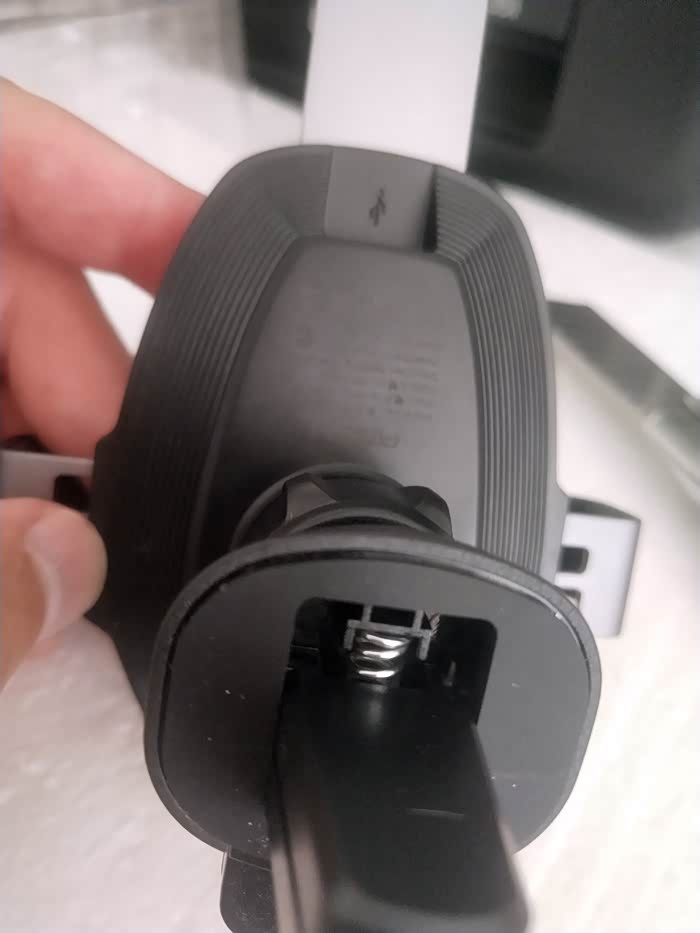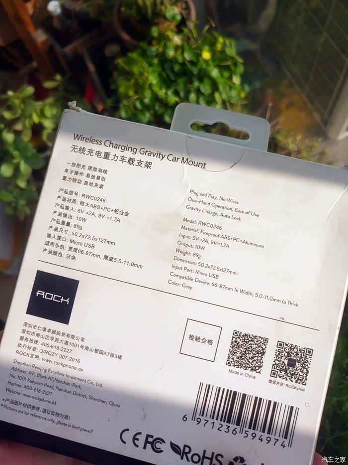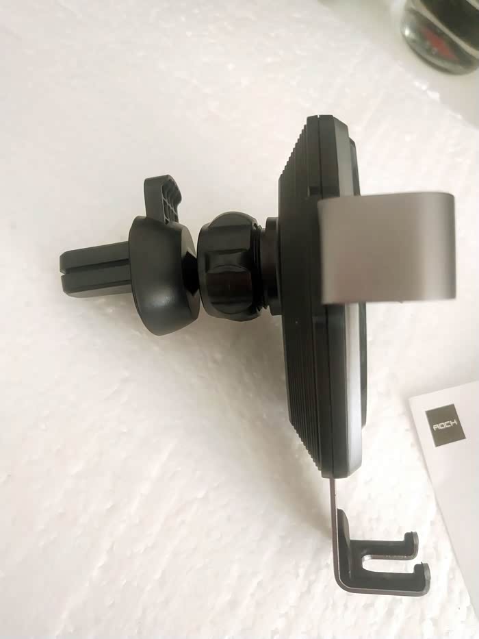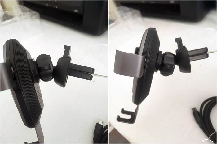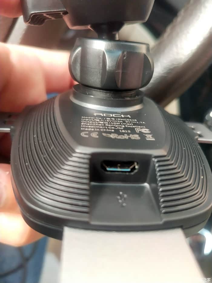 因为有无线充电功能,所以有输出输入的功率说明,也比一般的车载支架直接略微厚一些。
