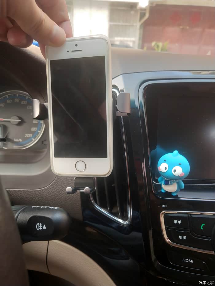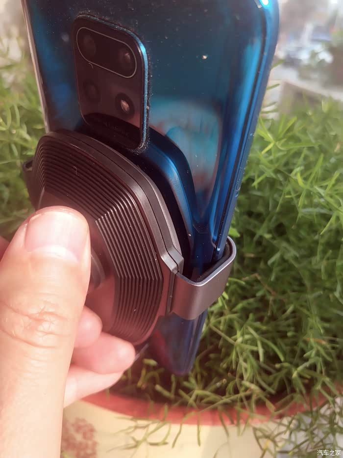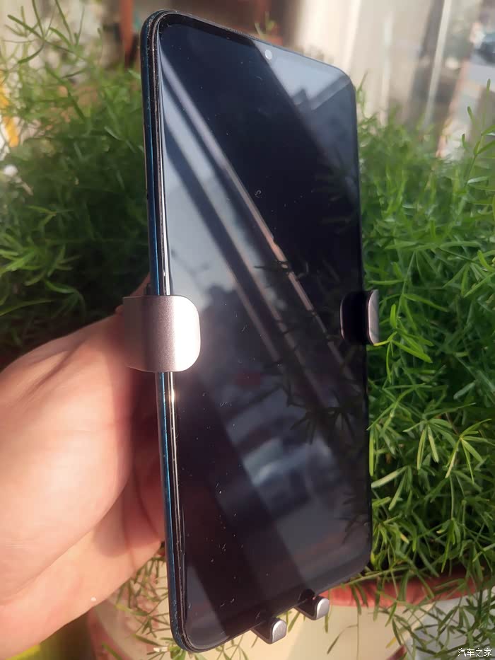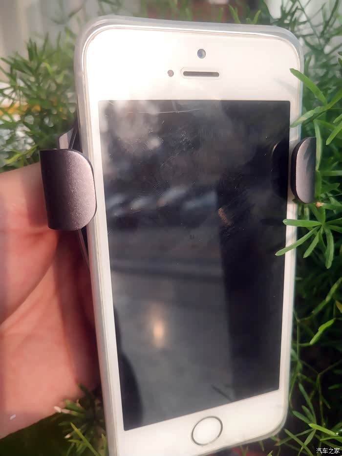 横出风叶片放上手机,角度调整不理想,更换到竖向叶片。支架采用重力了联动的方式夹住手机,拿取方便,放上去两边的夹子便会夹住手机,拿起来两边自然松开,这点确实方便,比右边夹子款的支架要好上很多。外观上也是简约而不简单。