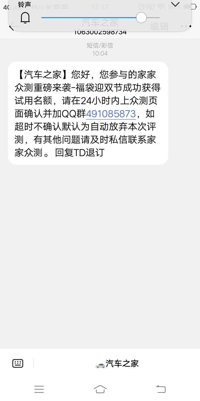 当收到这条短信的时候,说明你已经获得了众测的机会,恭喜你的同时千万不要因为忘了确认,而放弃了本次众测机会。