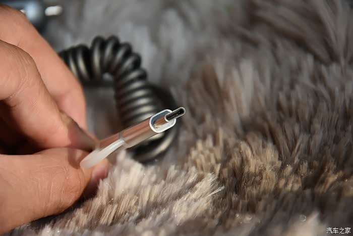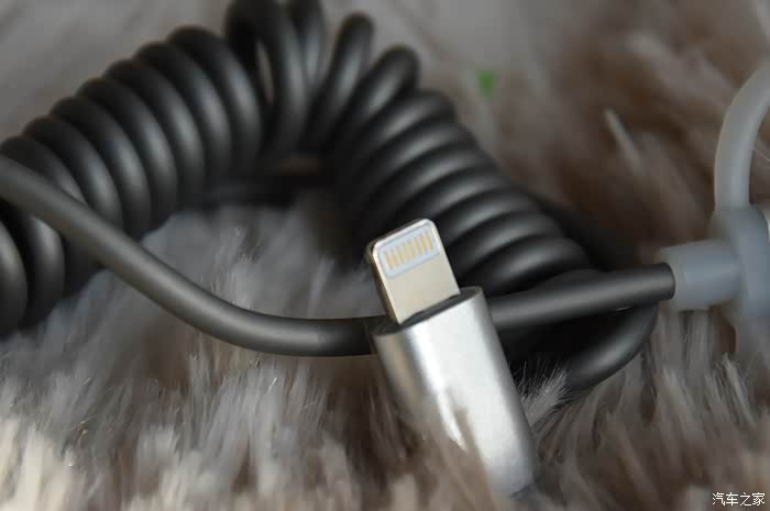 数据线是这种螺纹收纳型的,好像座椅电话线一样,这个有点就是不拖泥带水,节省空间。