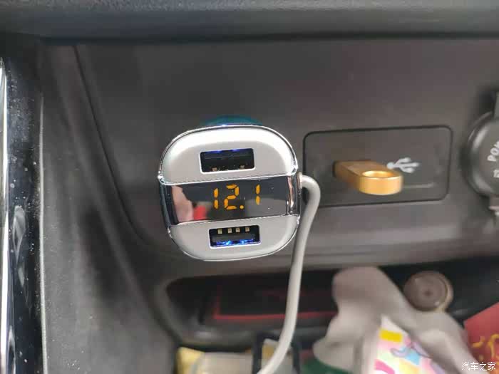 插在点烟器上面之后,可以显示出来当前的电压。
