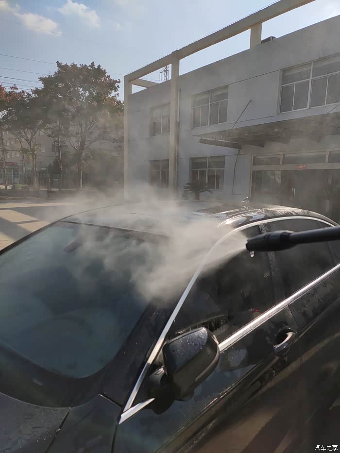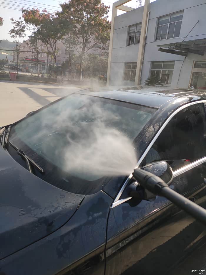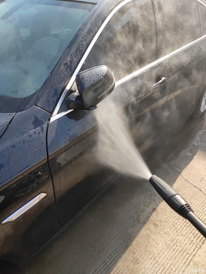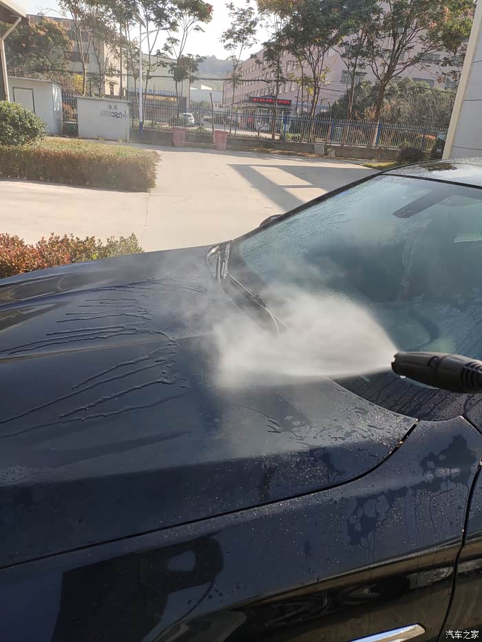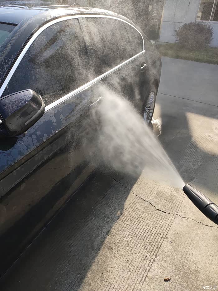 由于车子前几天刚刚洗过,近期天气又格外晴朗,所以没用泡沫擦洗车身。模拟下打完泡沫洗后的冲洗状态。
