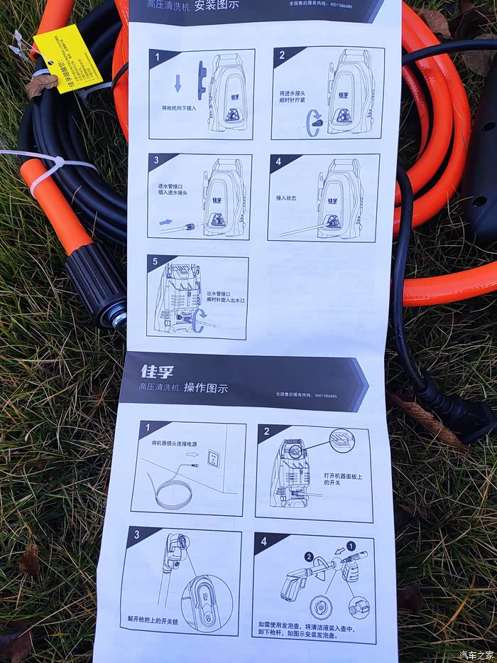 第一次使用高压洗车机,看着说明书一步步开始安装。