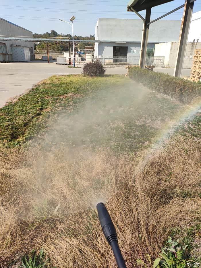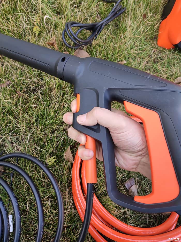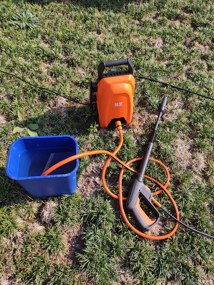 赶紧打来一桶水开始试用。要提醒的是刚开始使用时主机需要排气加压,这时最好把出水管和枪身分离,等管子里的水压稳定后再关机接上枪身开机。我刚使用时直接连着枪身开机,结果等了一分多钟才有水出来。