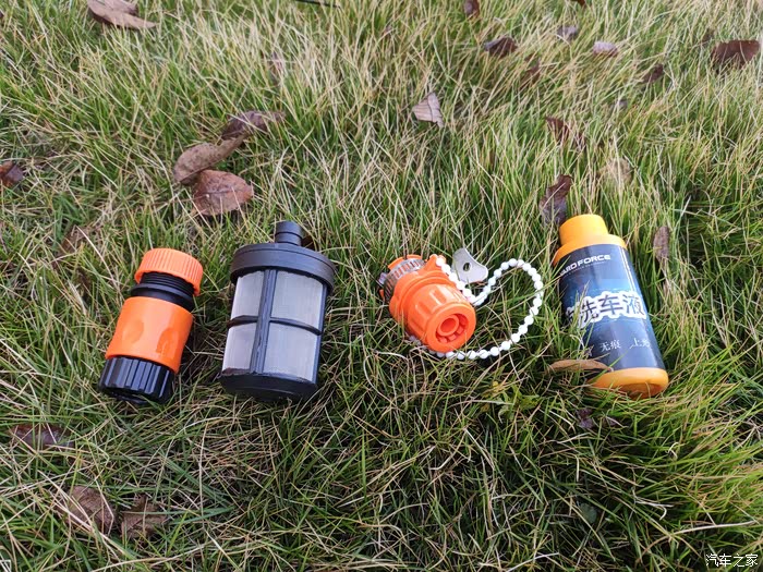 一袋子各种小配件,琳琅满目,还送了一瓶洗车液,赞一个。