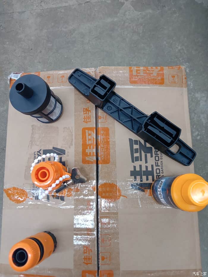 洗车机的一袋小配件,连洗车液都有,这一套东西太齐全了。