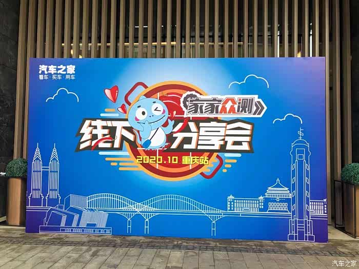 后面也挂了横幅,2020重庆线下分享会,家家众测、我来了、
